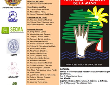 "X Curso Teórico-Práctico de Anatomía y Cirugía de la mano" El curso se celebrará en Murcia del 25 al 28 de Enero del 2022.