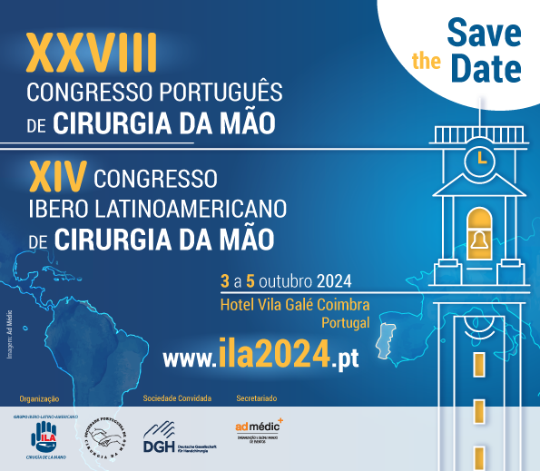 Es un gran honor y placer anunciaros la celebración conjunta del XXVIII Congreso Portugués de Cirugía de la Mano, con el XIV Congreso Ibero-Latinoamericano de Cirugía de la Mano en Coimbra, del 3 al 5 de octubre de 2024.